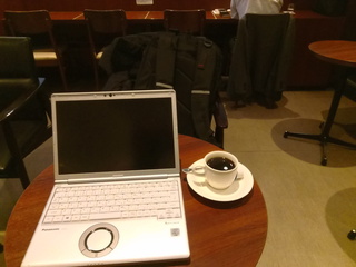 途中プログラムを書こうと思ったが、高速なネットワーク接続が必要なのであきらめ。書類仕事をしながら移動する。