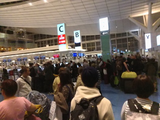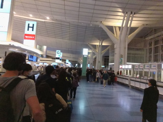 とりあえず出国・・・と思ったら、出国ゲート前にものすごい列。こんなに混んでるのは見たことない(年末年始とかは出かけないからね)。