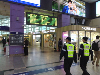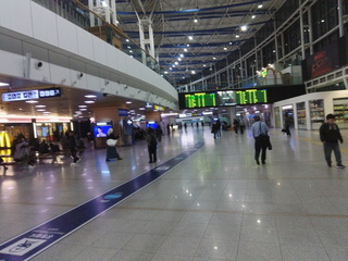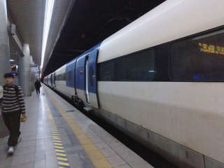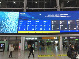 KTXの待合では、次の便が大きく表示されているのだが、出発ホームが直前にしか表示されない。6:03の便で出発予定だが、5分前ぐらいにようやくホームが表示されて、そちらに移動。
