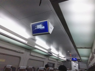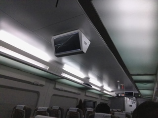 車内ディスプレイがあるのだが、出発時には裏のWindowsの画面が出ていて、何回か再起動していることがわかる。調子が悪いのかな。
