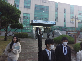 到着してみたが、会場がどこだかわからない。会場を教えてくださいと前々日に嶺南大に連絡しておいたのだが、返事がなかった。学生たちはホテルからまとめてバスで来ているので問題はないはず。連絡をしようにもeSIMが通信に使えない状態なので困った。eduroamがあったのだが、なぜか接続できない。近くにスタバがあったので、その近くに寄ってフリーWIFIの電波を拾ってようやくオンラインになると、研究室の越川君からDiscordで連絡が来ていた。彼にお願いして会場を教えてもらい、なんとか到着。