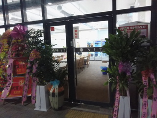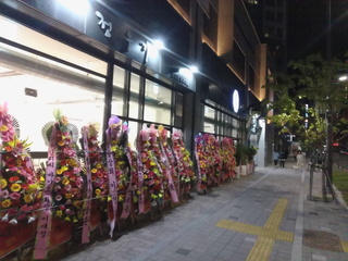 なんか花がたくさんある店を発見。開店記念かな。中はレストランらしかったが人はいなかった。実際の回転は明日以降なのかも。